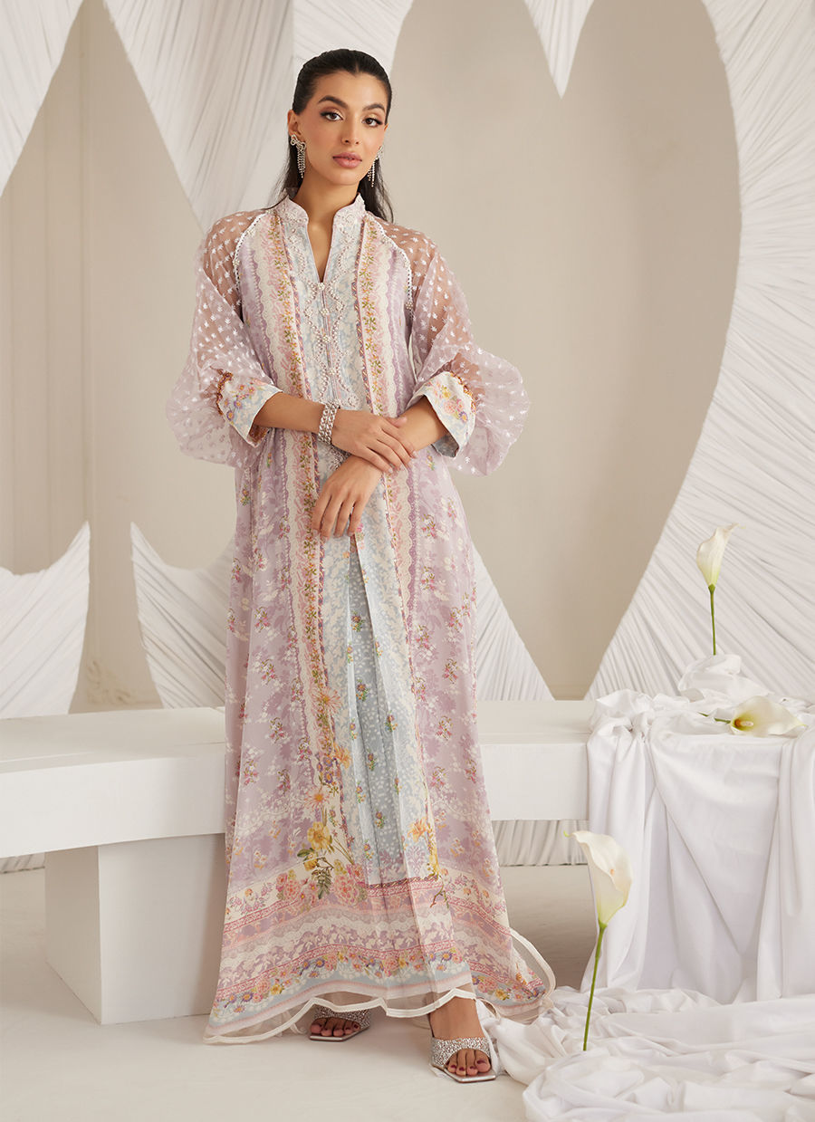 Color: Pink, Lavender and Pale Aqua Fabric: Crepe