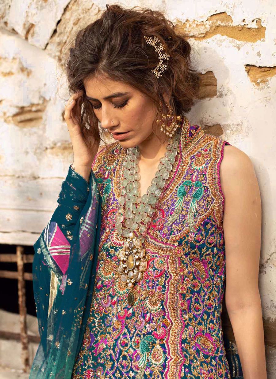 Delicately blooming into a unique symbol of subcontinental beauty. Magnificent in the morning, effervescent in the evening, yet leaving no fragrance. A vivid white and a captivating pink; the Erza angharkha is inspired by this enduring yet beautiful flower.