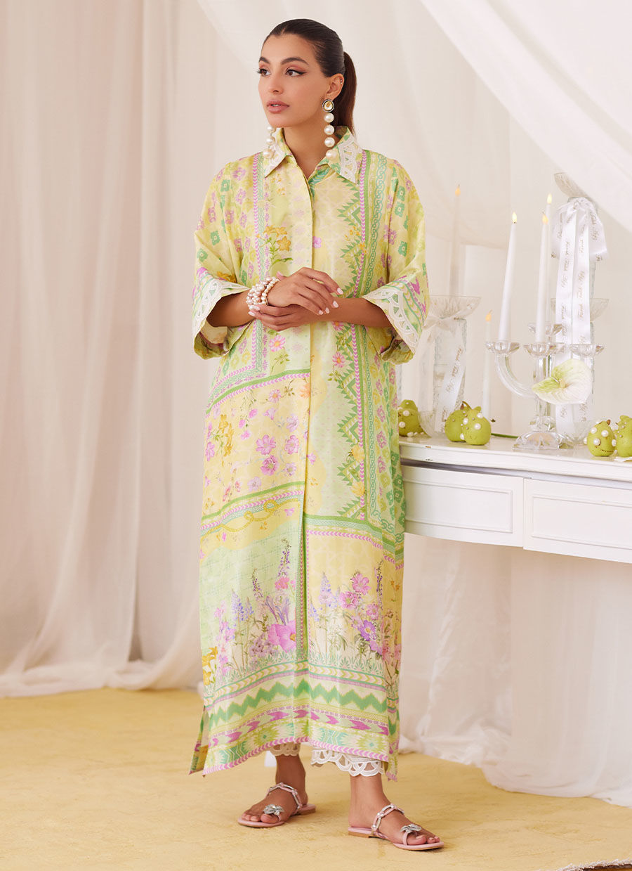 Irresistibly romantic florals, luxe fabrics and captivating details for the ultimate wardrobe reset!! Cut from sumptuous raw silk, the lemon and pink shirt dress is printed with whimsical florals paired with geometric elements, designed to catch the eye over and over, making this an absolute must have.
