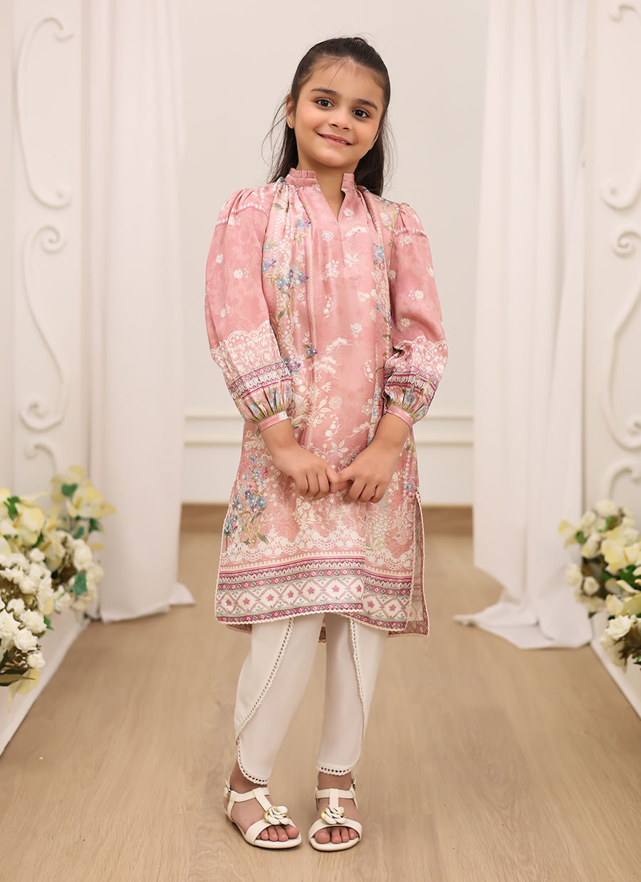 This chai pink soft floral printed raw silk kurta for young girls is a dreamy blend of elegance and whimsy. The warm, muted chai pink hue is complemented by a delicate floral print that adds a touch of grace and charm. The luxurious raw silk fabric has a soft, smooth texture with a subtle sheen, making it both comfortable and stylish. The kurta features feminine puffed sleeves that give it a playful, youthful silhouette, while the relaxed fit ensures ease of movement. Perfect for festive occasions, family gatherings, or celebrations, this kurta combines traditional beauty with a modern, fun twist, making it an ideal choice for young girls who want to stand out with both elegance and charm.