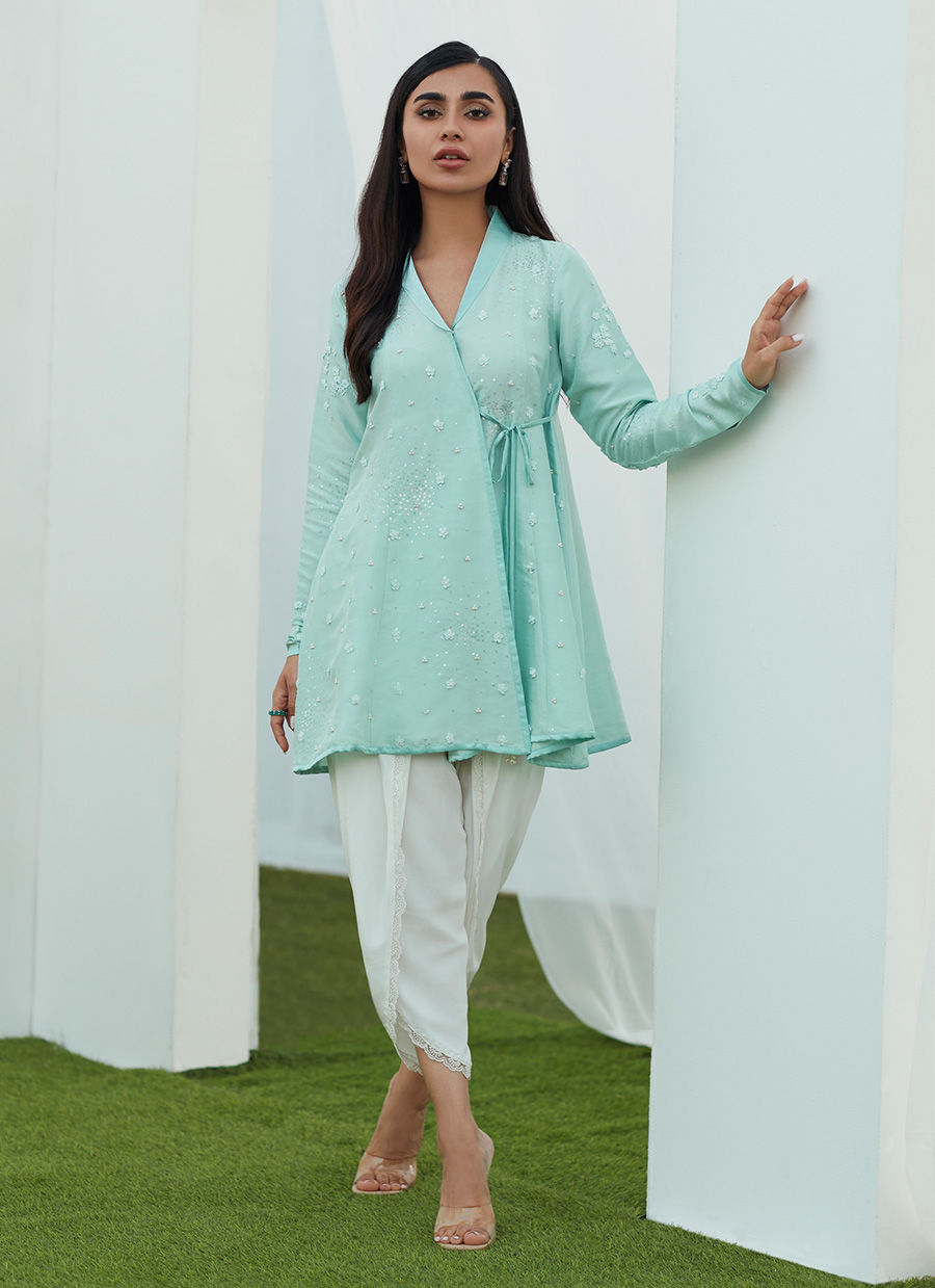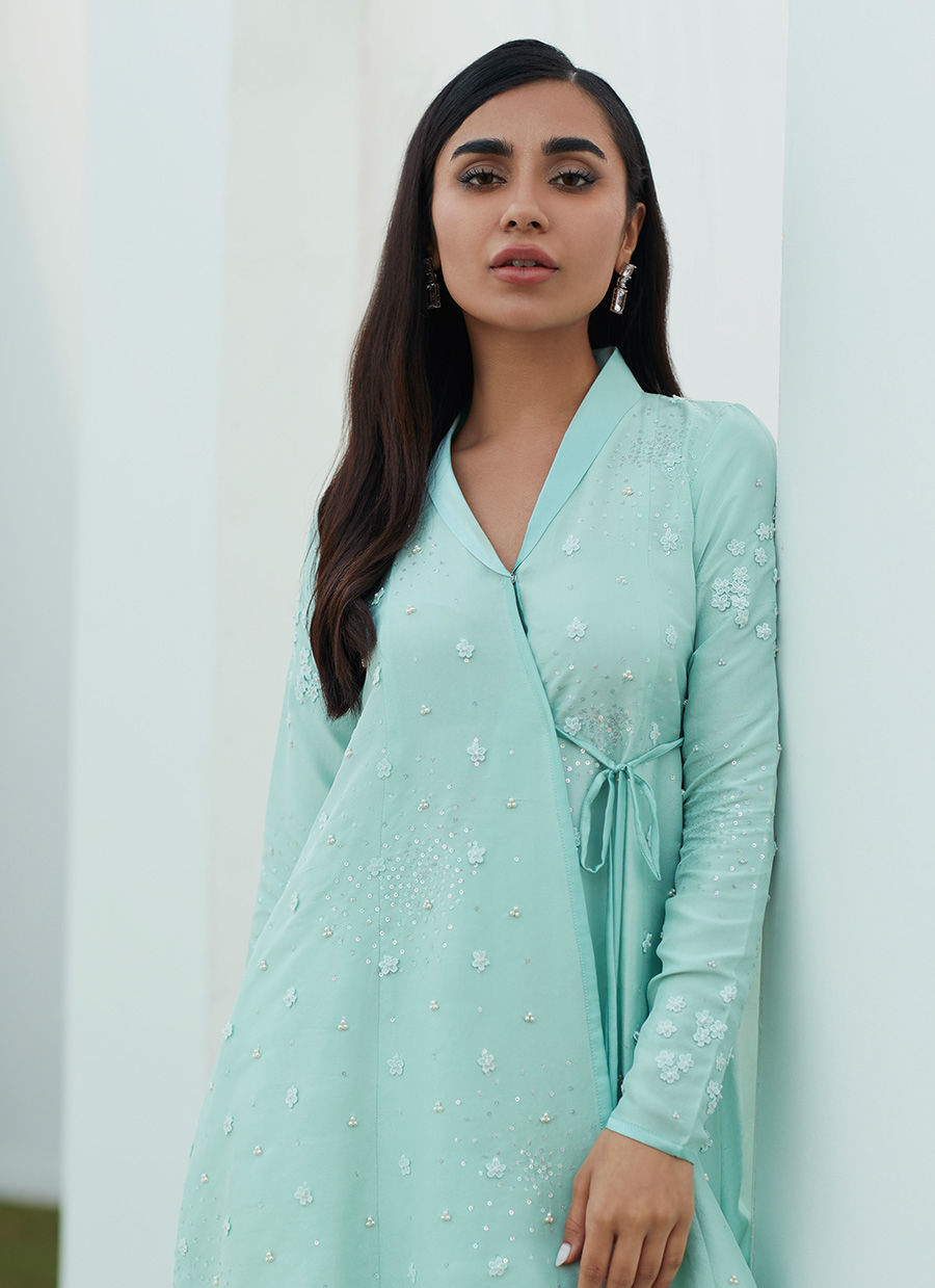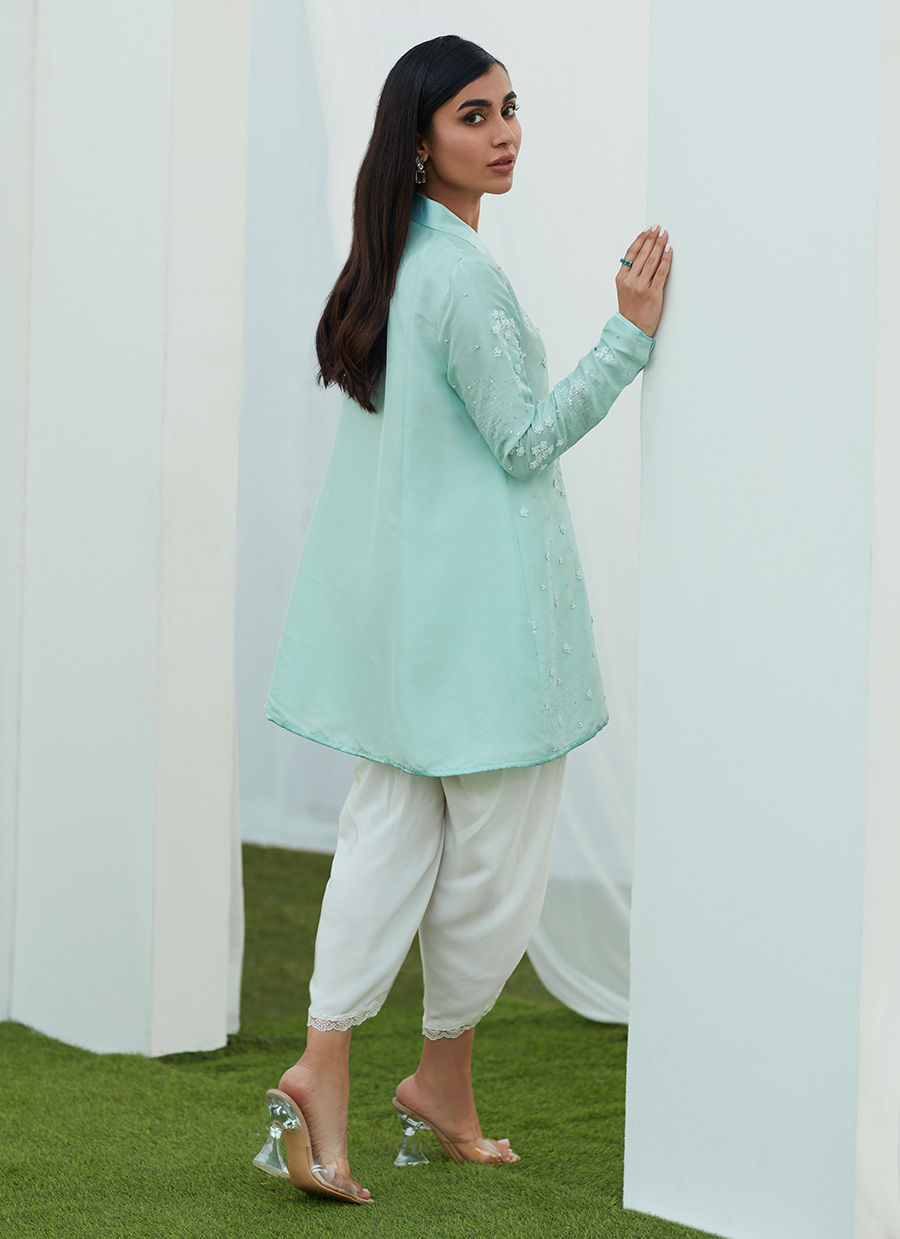 Color: Aqua Fabric: Raw Silk Work Details: Embellished
