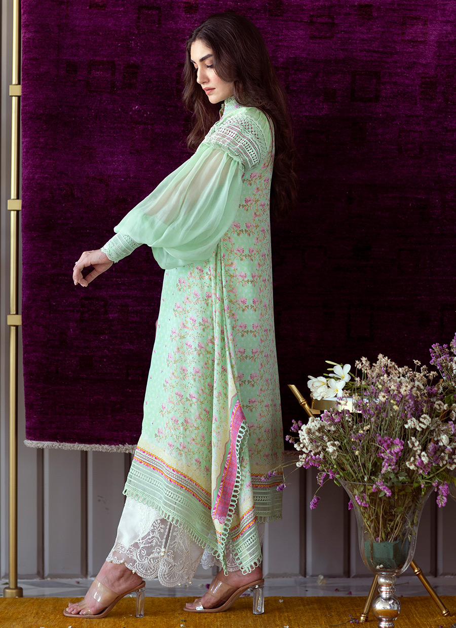 A universally flattering, relaxed silhouette is further enhanced by a statement chiffon statement sleeve with an intricate lace cuff. All you need this festive season are some unexpected details, luxe pure fabrics and the ultimate, cool pastel tones!!