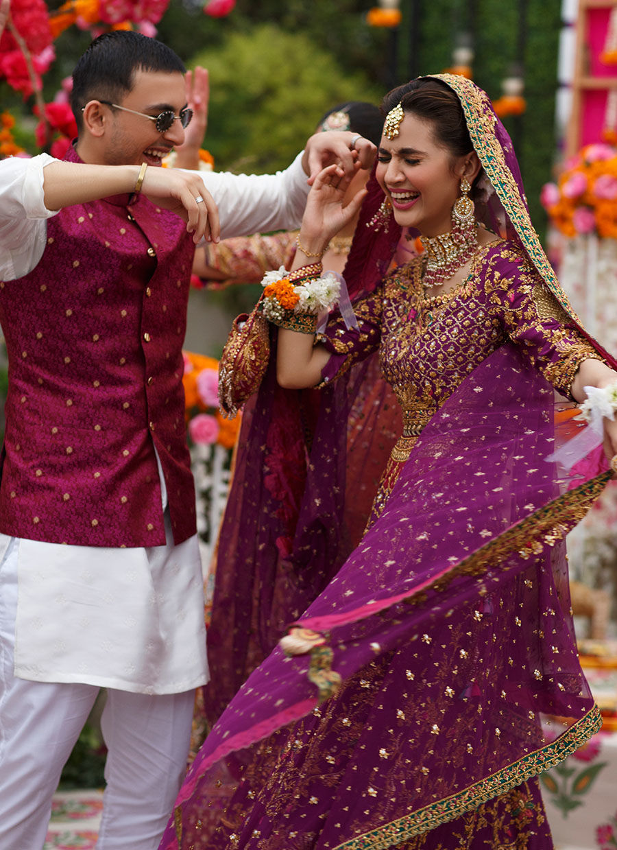 Farah Talib Aziz’s foray into menswear results in a sleek, pared down approach to the traditional festive ensemble for a groom.