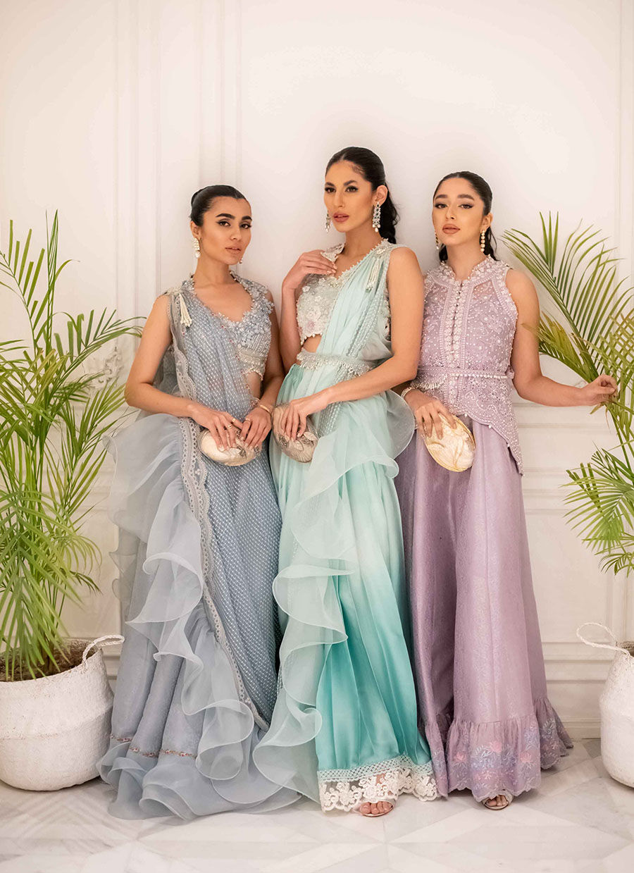 Color: Aqua Fabric: Organza Work Details: Hand Embellished