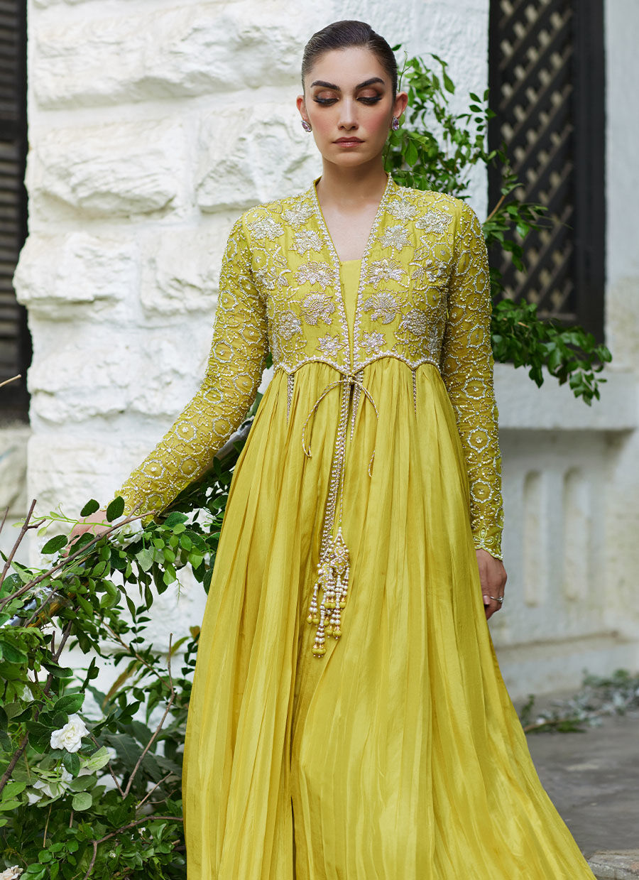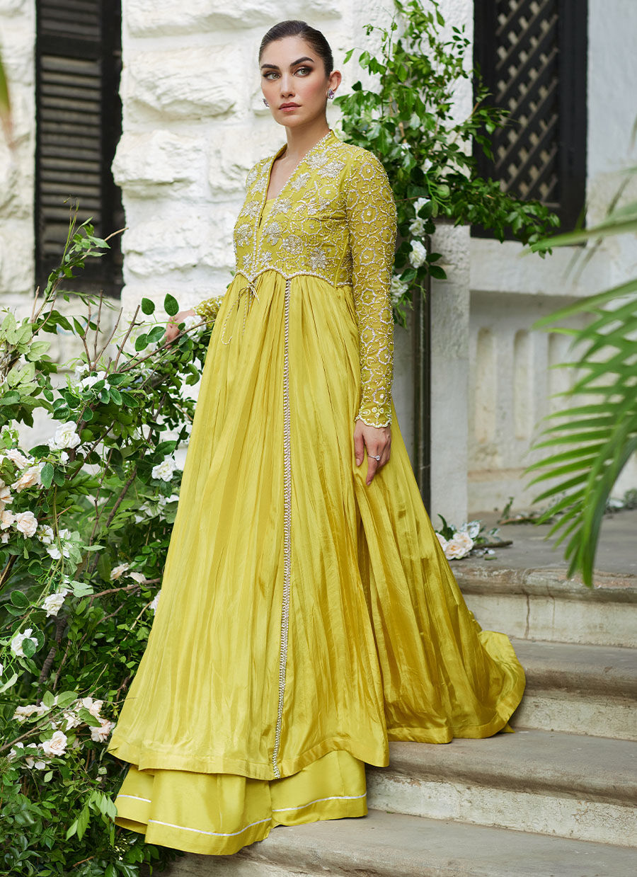 The bodice of this luxuriously, flowing kalidaar is generously hand worked created to steal the moment – be it day or night.
