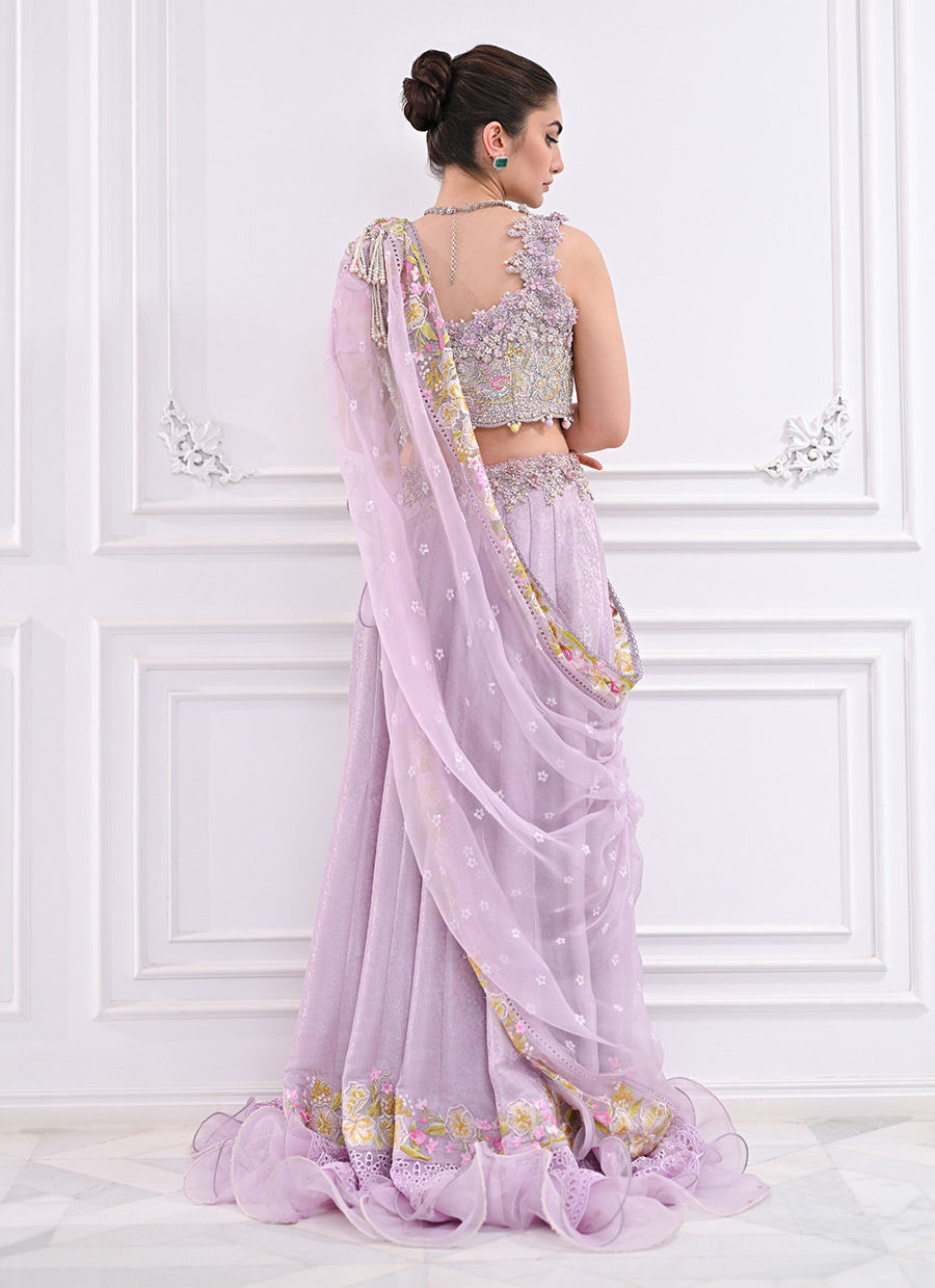 The Labella is a flowing, floaty dream for you to indulge in. This season’s most irresistible trend, the new-age lehnga choli in a refreshing lavender hue.