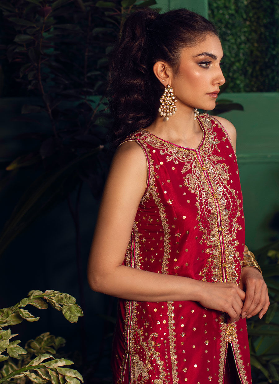 Color: Red Fabric: Crimson Silk Work Details: Hand Embellished