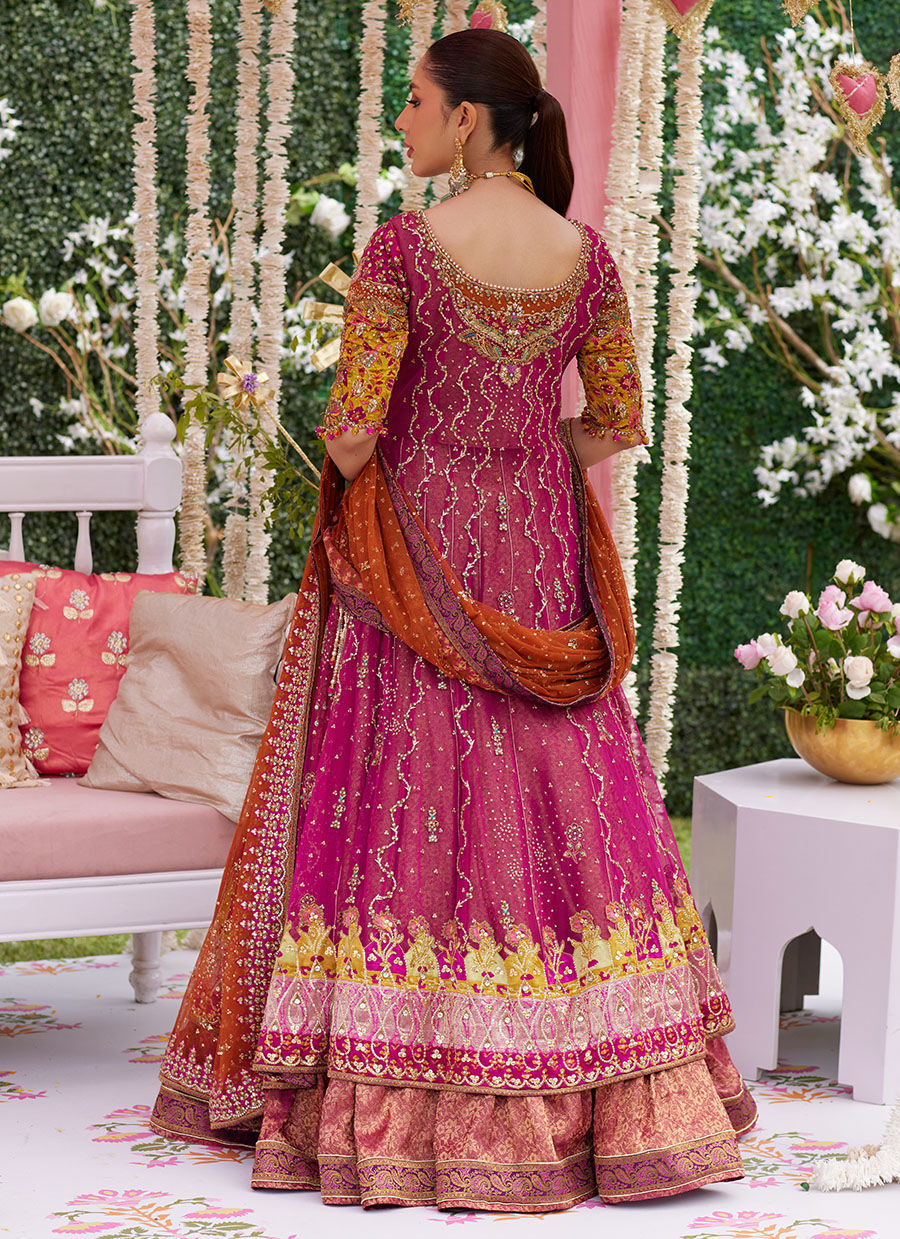 Introducing our captivating ensemble, a perfect harmony of elegance and traditional charm. This set features graceful net kaalis that add fluidity and movement, paired beautifully with a rich raw silk bodice and blockprint sleeves for a sumptuous feel. The ethereal net dupatta drapes effortlessly, adding a delicate touch that completes the look. The banarsi silk lehnga steals the spotlight with its intricate patterns and vibrant colors, making it a true showstopper. Enhanced with exquisite embellishments including tilla, resham, sequins, kora, dabka, and gotta, this ensemble sparkles and shines, catching the light and dazzling with every step. Ideal for weddings, festive celebrations, or special occasions, this outfit blends timeless craftsmanship with modern sophistication