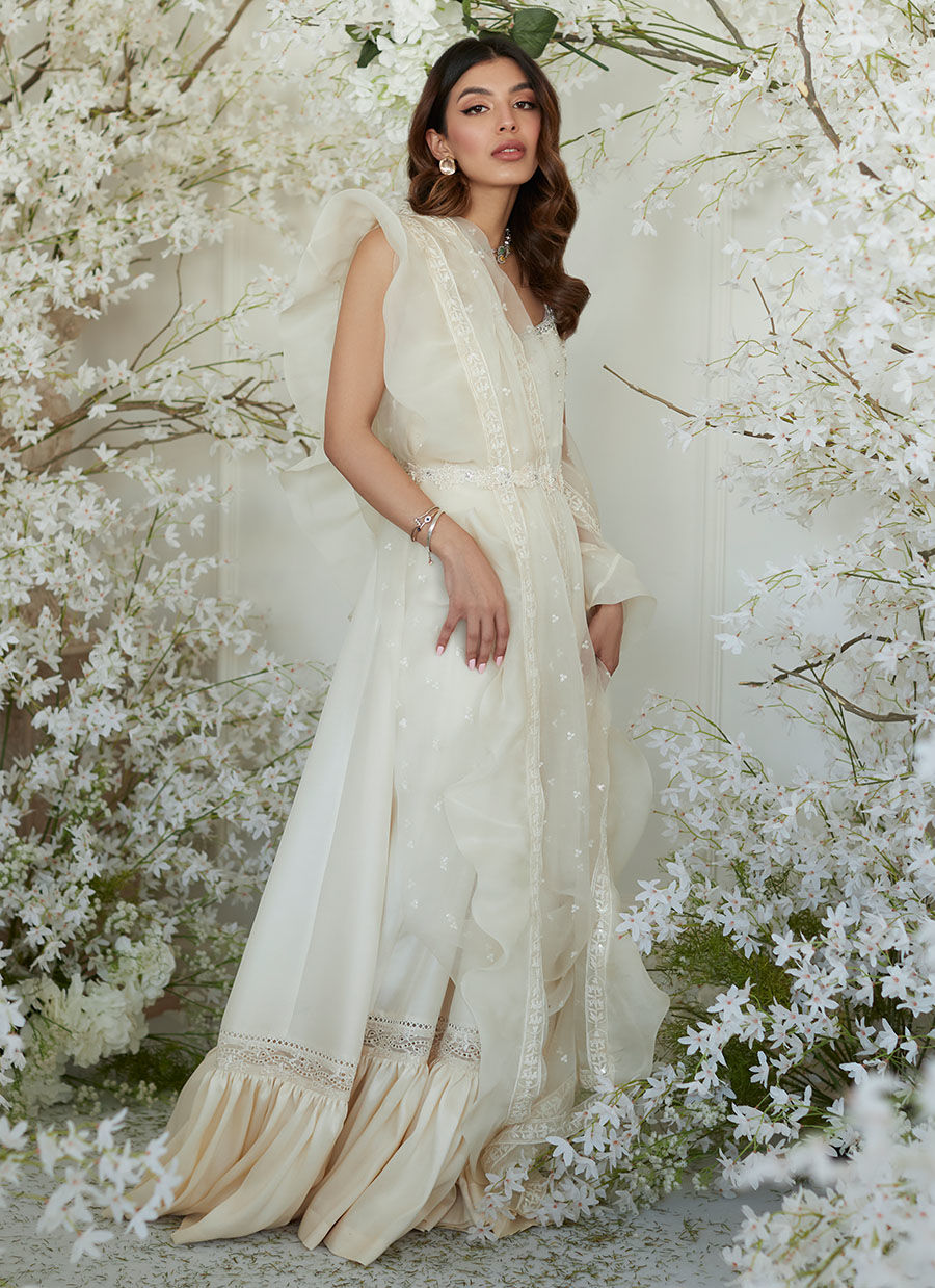 A beautifully pre-draped, organza dupatta trimmed with a soft, romantic frill is what makes this a must have outfit.