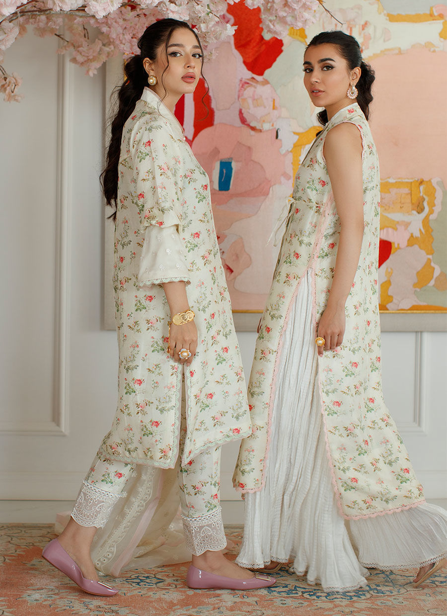 Rosalie Eden is cut from pure raw silk patterned with blooms in a lovely pastel palette. A contemporary uber-flattering silhouette, with the ultimate cool girl details to have your heart swooning. The wrap style of the shirt is made to endlessly flatter everyone who wears this utterly captivating outfit.