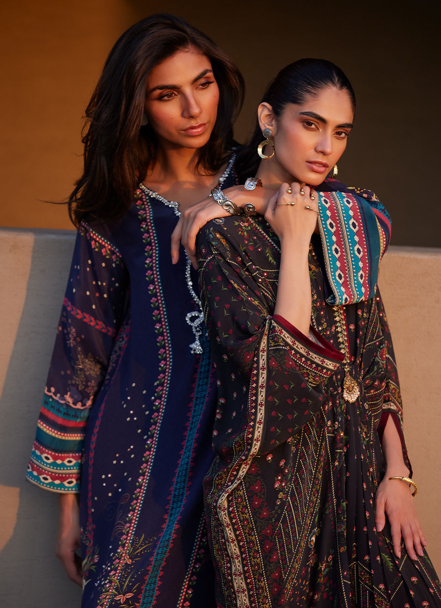 A canvas of midnight blue crepe silk is brought to life with delicate florals in bold, uplifting hues. Effortlessly stylish and endlessly wearable, the neckline is delicately hand-embroidered and adorned with sparkling Swarovski crystals, adding an understated touch of shimmer that catches the eye with every step. Fluid, graceful, and undeniably sophisticated, this kaftan is the perfect choice for elevated soirées, intimate dinners, or any moment that calls for that laid back luxe look.
