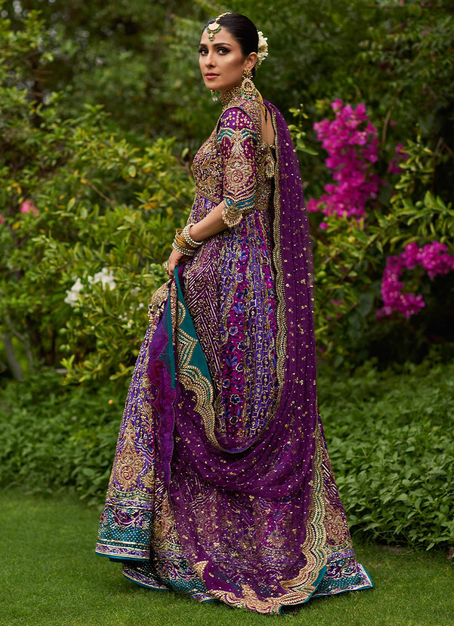 A kaleidoscope of jewel tones, with no shortage of bold details. A stunning kalidaar that we are absolutely obsessed with. The show stopping colour in a charmeuse silk, giving you the best fall as well as ample volume for that perfect twirl. The exclusively hand block printed fabric is adorned with an array of delicate hand embroidery all over. The shirt that we can’t get our eyes off, has unimaginable detailing from the ultra-flattering flared silhouette to the cut work back (that can be customized in a less revealing fashion). The sleeves with hanging tassels, intricate cutwork, hand crafted jewelled motifs make the outfit unforgettably unique. The fully hand lengha with stunning heavily worked borders, Laden with heavy sequins and lavishly handworked borders, the striking net dupatta completes this bridal ensemble with undeniable glamour. A stand apart look for any festive event